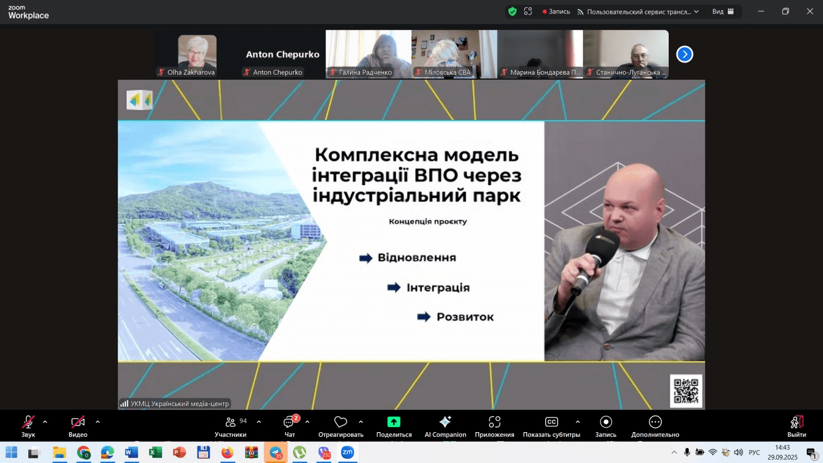 Також Валерій Подкуйко представив розробку Школи бізнесу та Аналітичного центру – Комплексну модель інтеграції внутрішньо переміщених осіб через індустріальний парк. Ідея викликала жваву дискусію серед підприємців, науковців та представників обласної влади.