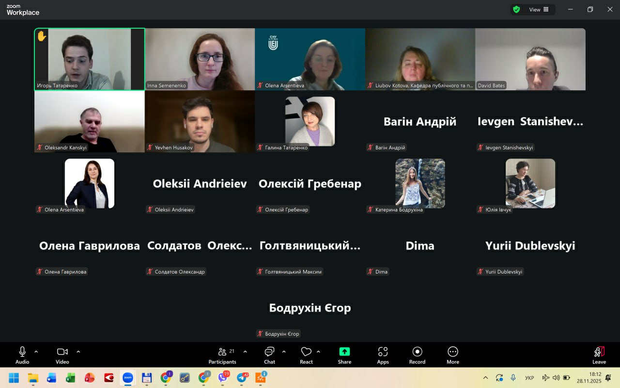 On 28 November 2025, a guest lecture was given by David T. Bates for young scientists and higher education students of the third (educational and scientific) level of the speciality ‘Law’.