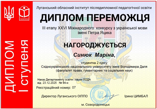 Здобувачі вищої освіти Східноукраїнського національного університету імені Володимира Даля взяли участь в обласному етапі XXVI Міжнародного конкурсу з української мови імені Петра Яцика.