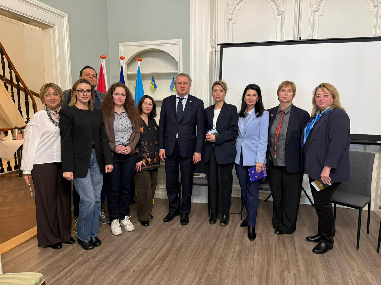 У стінах дипломатичної установи делегація взяла участь у презентації документального фільму «Сліди», який знятий українською режисеркою Алісою Коваленко у співрежисерстві з Марисею Нікітюк. Зустріч у Посольстві України в Нідерландах була ініційована SEMA Ukraine, організацією українських жінок, які постраждали через сексуальне та гендерно обумовлене насильство внаслідок збройної агресії Росії проти України і мають активну громадянську позицію. Стрічка «Сліди» присвячена надзвичайно чутливій та важливій темі — сексуальним злочинам, скоєним військовими під час війни проти України. Фільм висвітлює не лише особисті історії постраждалих, а й складний процес документування та розслідування таких злочинів у контексті міжнародного права.