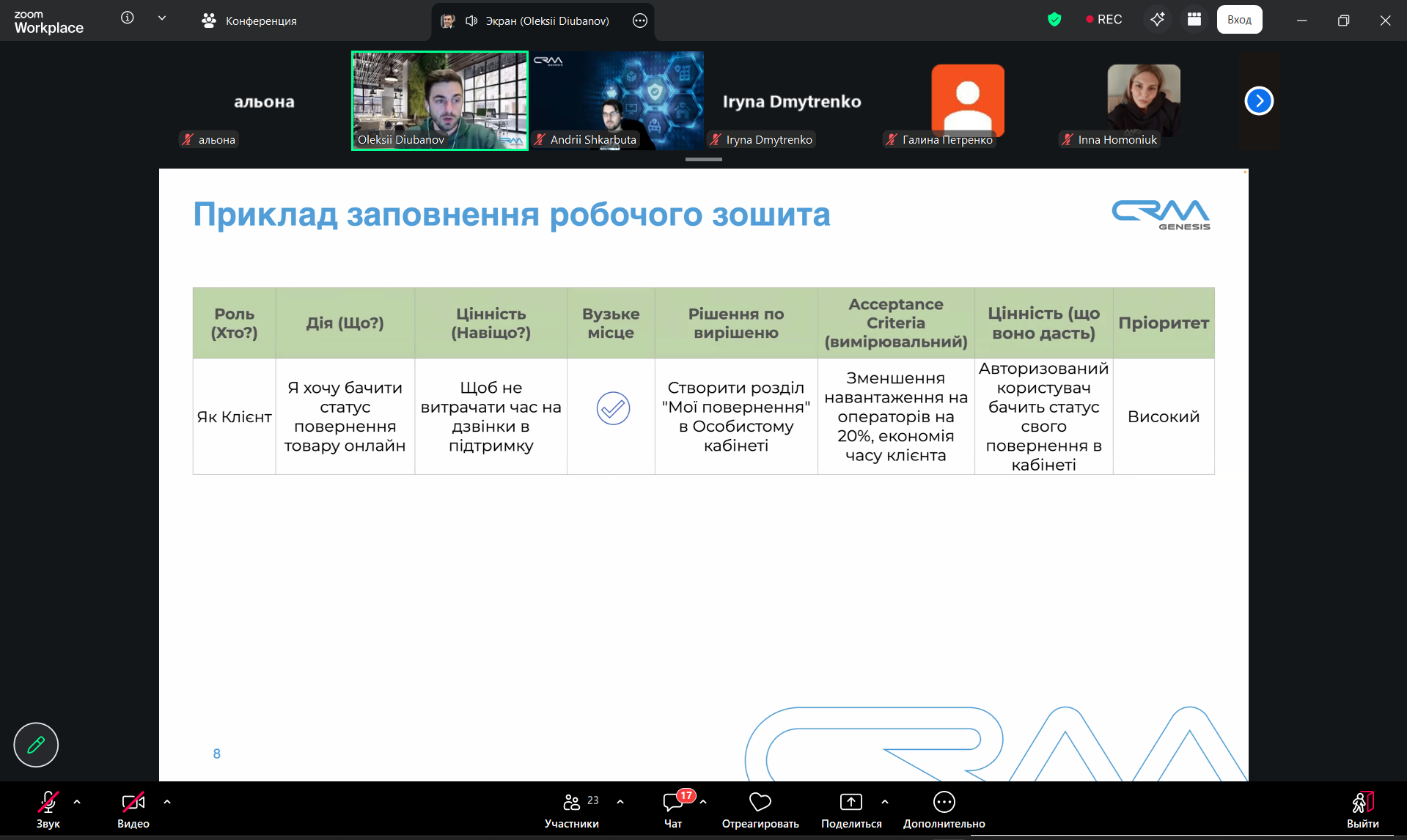 Доцент кафедри інформаційних технологій та програмування факультету інформаційних технологій та електроніки Олексій Дюбанов разом із колегами компанії CRM Genesis провів практичний воркшоп на тему «Збір вимог та бізнес-аналіз. Кейс: e-commerce».