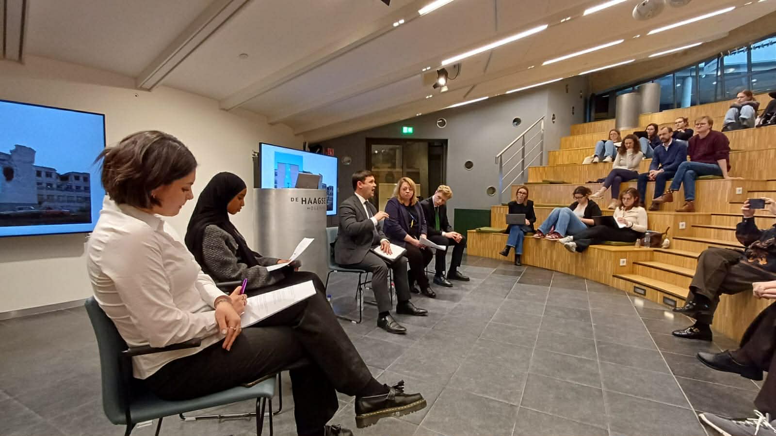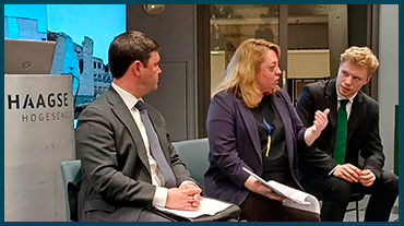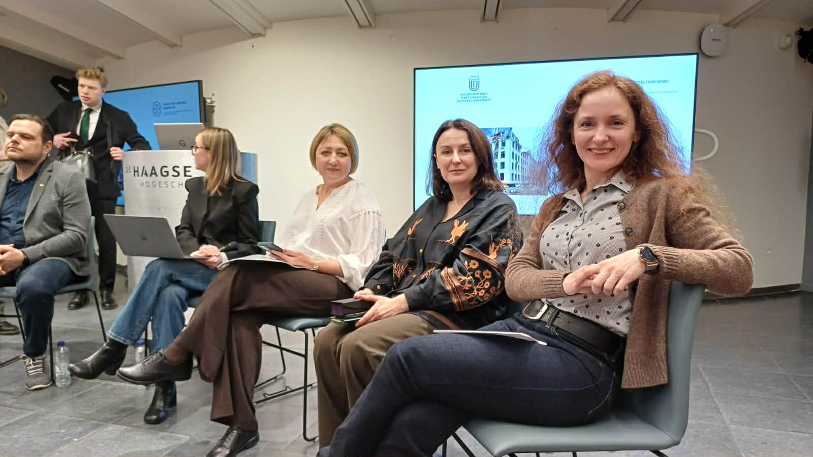 У межах візиту делегації Східноукраїнського національного університету імені Володимира Даля до Гаазького університету прикладних наук (The Hague University of Applied Sciences, THUAS) відбулася панельна дискусія, яка викликала значний інтерес серед студентів, викладачів та співробітників університету. Захід став важливою платформою для відкритого діалогу про досвід українських університетів в умовах війни, а також про міжнародні механізми документування та відшкодування збитків.