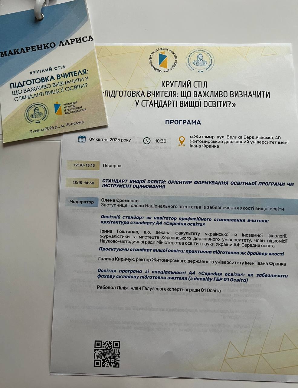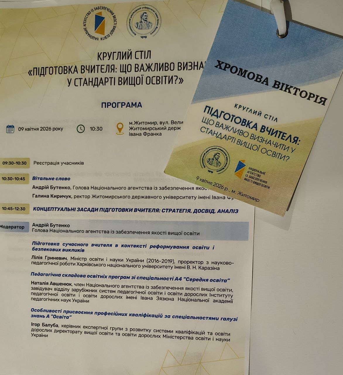 На базі Житомирського державного університету імені Івана Франка 9 квітня 2026 року відбувся круглий стіл Національного агентства із забезпечення якості вищої освіти на тему «Підготовка вчителя: що важливо визначити у стандарті вищої освіти?».
