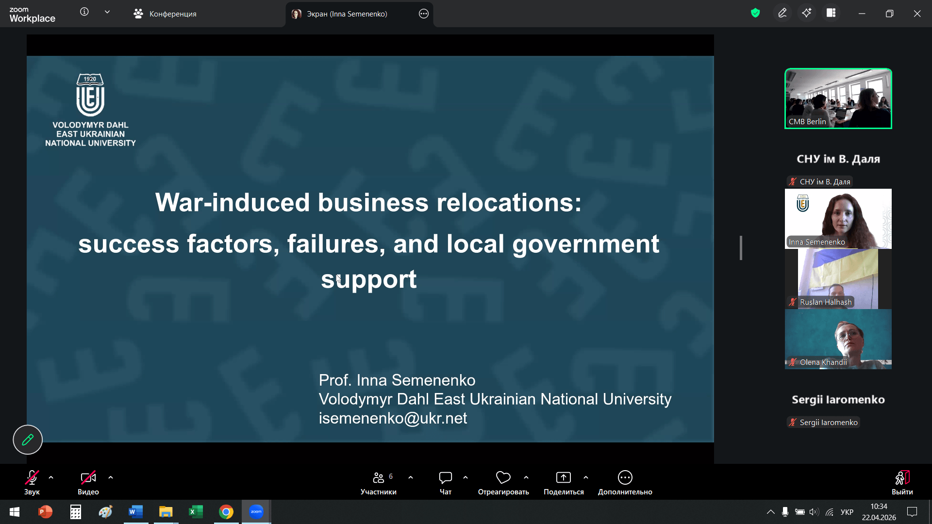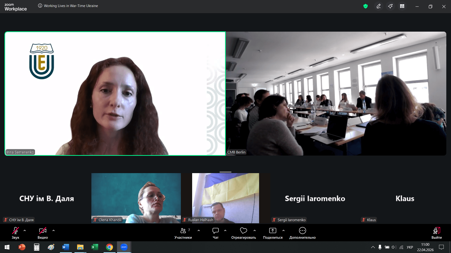 Професорка кафедри економіки і підприємництва факультету економіки і управління СНУ ім. В. Даля Інна Семененко долучилася до круглого столу “Ukrainian Working Lives: Vulnerabilities, Shifting Geographies, Resistance”, присвяченого аналізу трансформації трудових практик у світі під впливом війни, переміщення, втрати інфраструктури, зміни місця проживання, а також адаптації людей і бізнесу до нових умов.